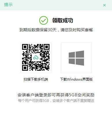 ②然后登陆客户端,系统会再次弹出福利领取界面,可继续领取5GB空间!