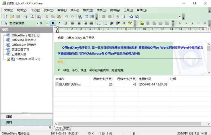 1.Office 电子日记最新版绿色、小巧、快速,可以在U盘使用,完全免费;