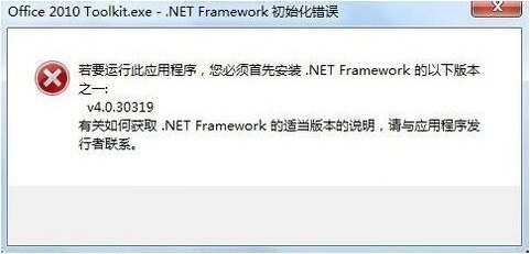 运行office 2010 toolkit时如果提示:您必须首先安装.net framework的以下版本之一....(如图),就说明你电脑中的.net版本过低,只需更新或安装一个.net4.0即可(绿色资源网有提供,请看图下方)。