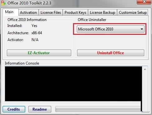 2.打开office2010 toolkit后,软件会自动检测电脑中office的版本(如下图)