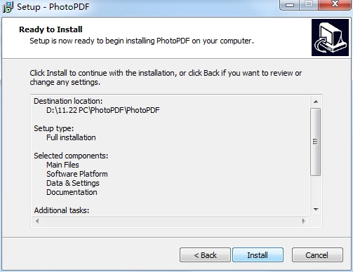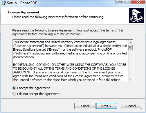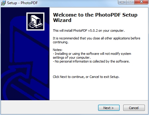 3、选择软件安装目录,默认为“C:Program Files (x86)PhotoPDF”,点击next