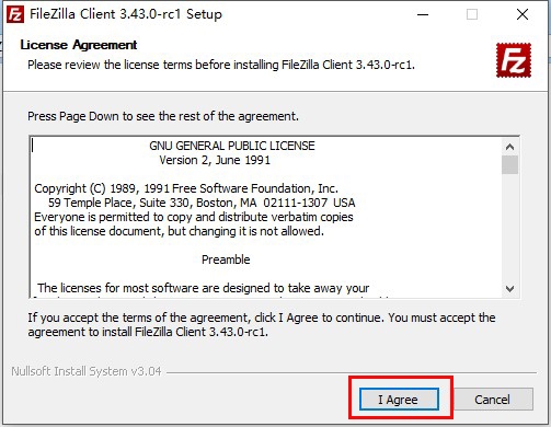 1、在本站下载最新版的FileZilla安装包,双击运行,阅读安装许可协议,单击【I Agree】进行下一步安装