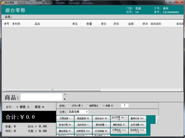 硬件支持:POS打印机、钱箱、条形码扫描枪、客户显示屏