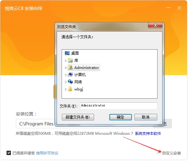 3、对软件的安装位置选择,默认位置“C:Program Files (x86)悦商云”,建议安装D盘,点击立即安装;
