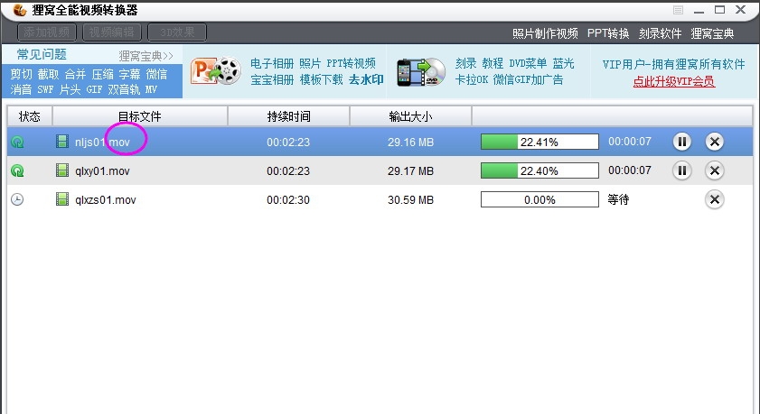 - 视频合并;把不同的多个视频文件合并成一个文件,进行转换。