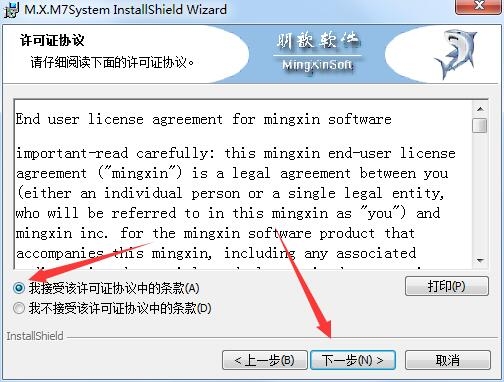 4、接受,点击下一步
