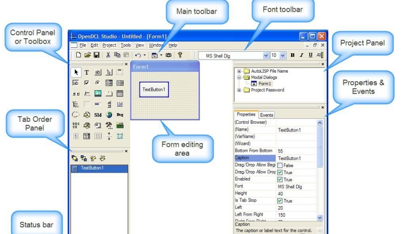 0penDCL的主窗口很简洁,与Visual Basic的界面非常相似;