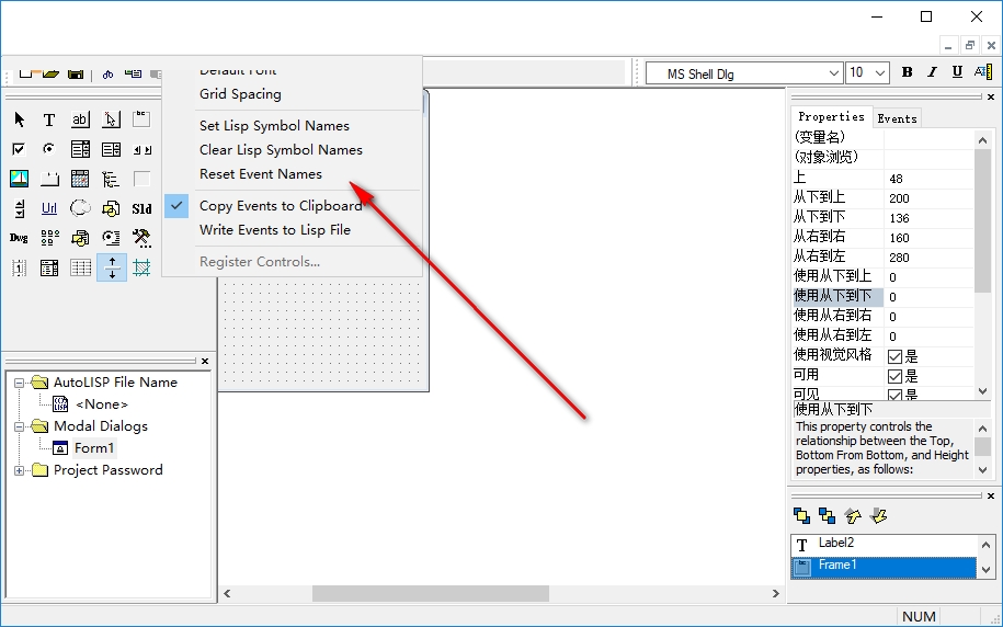 7、工具界面显示默认字体、网格间距、 设置Lisp符号名称、清除Lisp符号名称、重置事件名称、将事件复制到剪贴板、将事件写入Lisp文件