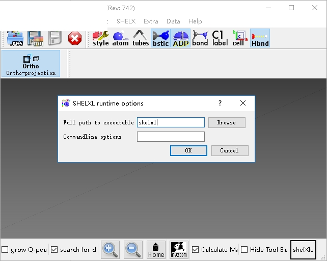 11、可以选择指定SHELXL运行时选项,设置可执行文件的完整路径,输入命令行选项