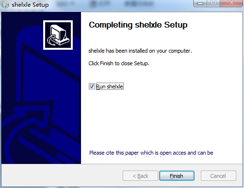 7、这里是shelxle安装成功的界面,点击finish结束