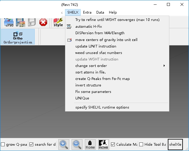 9、支持SHELXL编辑器、旋转时的线模型、重绘结构、从当前文件重新加载结构