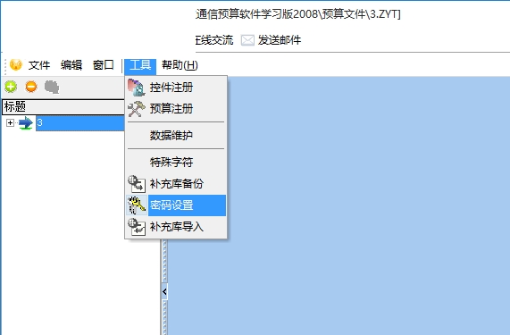 3、点击工具,可以设置数据维护、特殊字符、补充库备份、密码设置、控件注册等