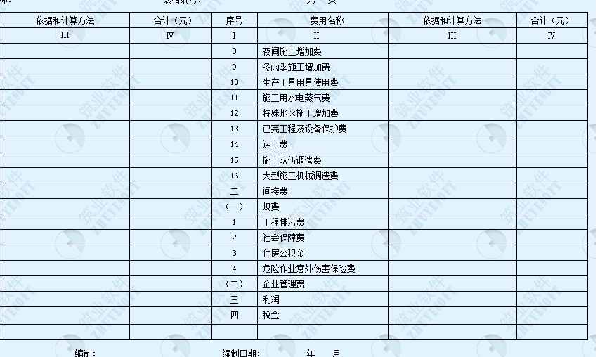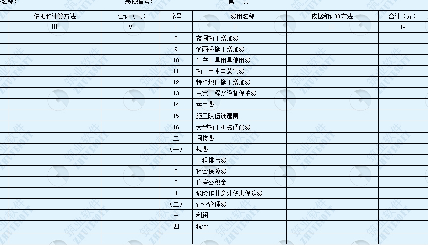 建筑安装工程费用算表(表二