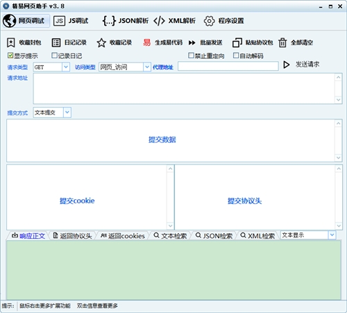 网页调试 → 即可封包请求测试、JSON解析、与JS调试!