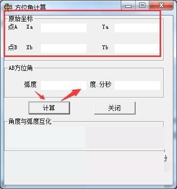 1、输入原始坐标,点击计算得出弧度和度分秒