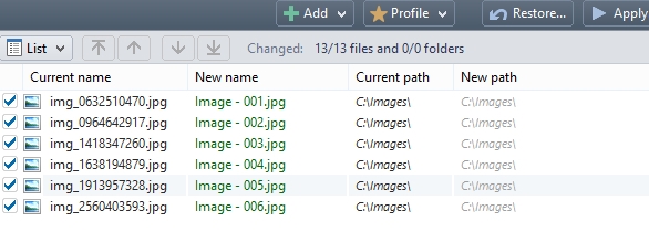 首先,将要重命名的图像添加到列表中。您可以使用选择对话框,也可以使用拖放功能将文件/文件夹添加到程序界面中。