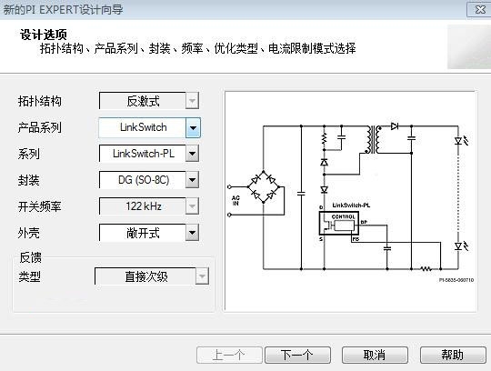 第一步:选择电路形式(反激)选择芯片,选择LinkSwitch™-PL,,,看图