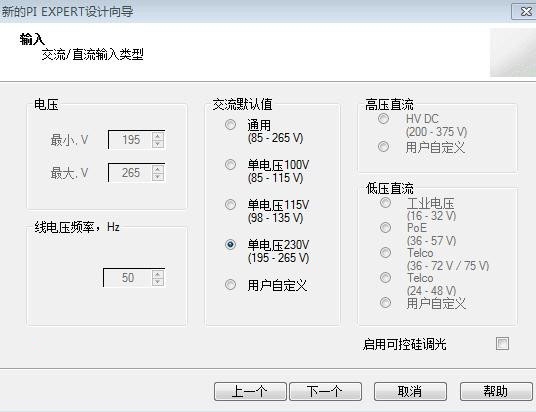 第二步:先择输出电源类型,这里选AC195-265V。