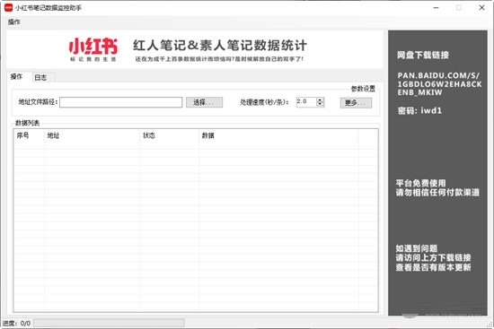 3、选择选择有小红书笔记链接的文本文件,即可自动查询数据。