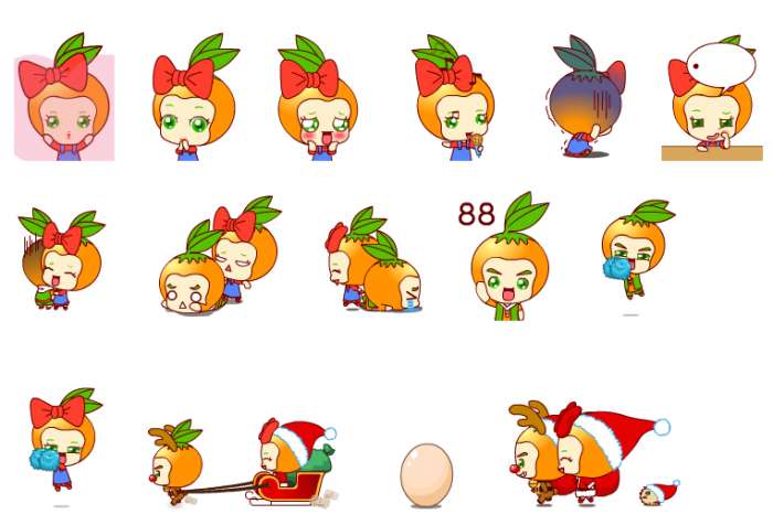 一个橙子小男孩子和一个小女孩儿,表情有骂人,怒,怕,酷,鼓掌,加油,撒娇,飞吻,哭,汗,狂吃饭,狂,橙橙飞吻,加油,睡着,抓狂,吃棒棒糖,感冒。