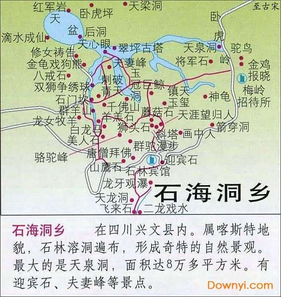 兴文石海洞乡旅游地图是一款非常不错的旅游路线图,为你清楚的标识了各个景点之间的各种线路,让你能够以便捷而又节省时间的方式方法来一处不落的进行旅游观光,有需要的朋友欢迎到pk游戏网下载!
