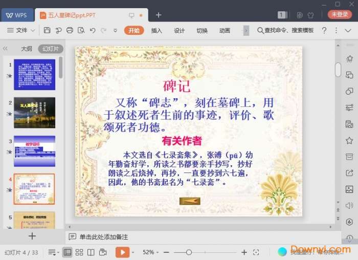 五人墓碑记ppt课件在学习这篇文言文的时候提供了很好的内容背景,让你在学习的时候感受书本上没有的讲解。课件的内容较为丰富,如果您需要欢迎来体验!