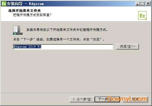 5、设置开始菜单文件夹的名称,默认为“Edgecam 2019 R1”
