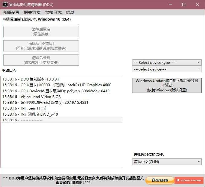 -显卡驱动彻底清除器最新版可以在正常模式下使用,但为了绝对的稳定性和有效性,建议您在安全模式下选择“清理显卡驱动并重启”按钮。