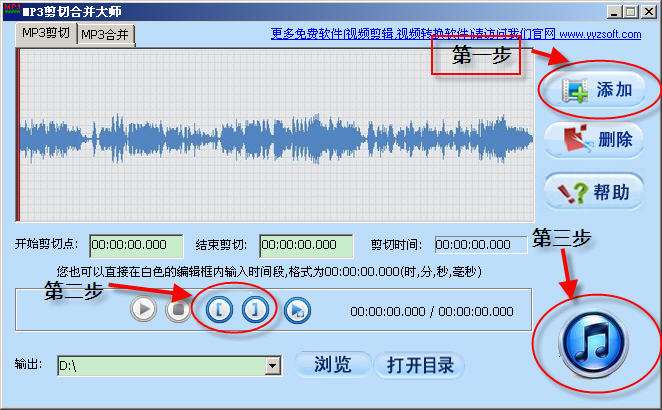 MP3剪切合并大师支持对MP3文件进行任意时间段的切割,并且支持MP3, WMA, AMR, AAC,WAV等大部分流行格式。
