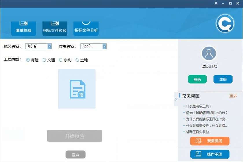 2、您可以在软件的界面上打开一种类型的标书查看,支持清单校验、支持招投标校验
