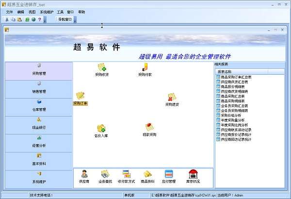 超易五金进销存软件是一款专业的五金销售管理软件,是绿色版软件、安全、稳定、无插件、免安装下载即可使用。软件从进货,销售,库存,财务管理等各方面对五金商品进行管理。超易五金进销存管理软件广泛适用于五金商店,建材商店,五金相关公司及企业等用于五金销售管理,库存管理,五金建材企业内部财务等场合,是企业对五金进、销、存、财进行信息化管理的强大工具。