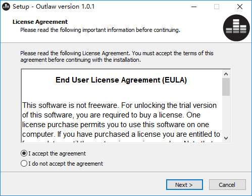 1、从本站下载Outlaw官方版音频插件后,解压缩,运行安装程序