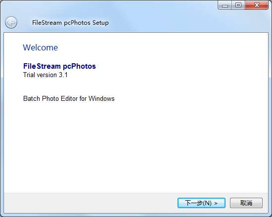 1、在PC下载网下载pcPhotos官方版压缩包,解压后,双击exe文件,进入安装欢迎界面,点击下一步
