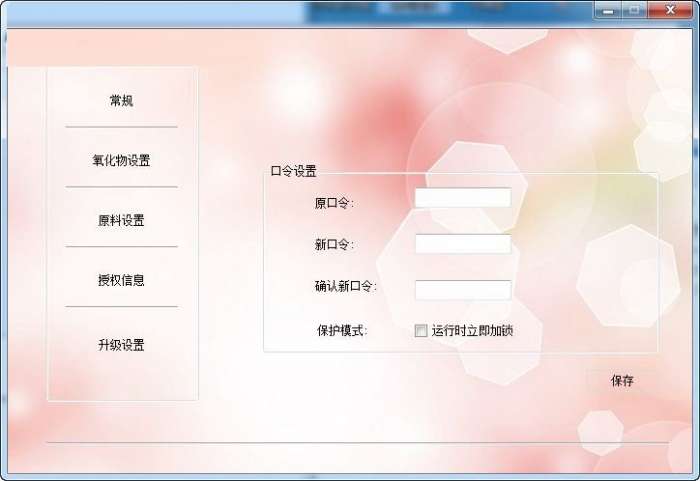 5、设置,支持对常规、氧化、原料、授权信息、升级进行设置。