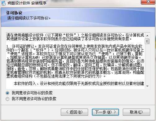 1.到PC网下载肯酷设计软件官方版软件包,解压后,双击EXE文件安装,点击“我同意”继续