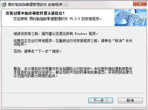 7.正在安装易时瑜伽跆拳道管理软件中,耐心等待一下