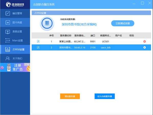 北创联合编目系统官方版是适用于各企事业单位学校图书馆联机下载书目数据的编目软件。北创联合编目系统最新版支持自定义添加服务器列表,还支持 Z39.50协议。北创联合编目系统官方版将人力和数据结合在一起,可有效避免重复建设,同时,也加强了图书馆里图书的管理,是图书馆进行现代化管理的必备工具。