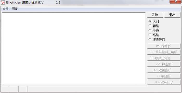 Elliottician速度认证测试提供简单的认证功能,用户可以在软件识别波浪类型,提供七种波浪识别,软件自动播放需要认证的内容,自动在软件显示线段,你需要做的就是点击波浪的名字,从而可以进入下一步识别更多的波浪类型;该软件支持IM-推动浪、ED-终结倾斜三角形、cT-收敛三角形、ZZ-锯齿形、DZ双锯齿形、FL平台形、D3-双平台形等认证方式,用户可以在软件选择认证的难度,需要的朋友就下载吧!