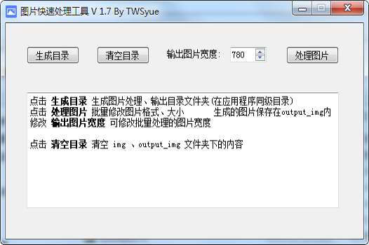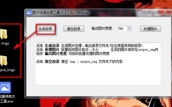 点击 生成目录 生成图片处理、输出目录文件夹(在应用程序同级目录)