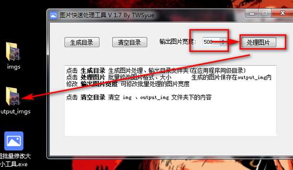 二、将要转换的图片移动到img文件夹中,设置生成图片的宽度,点击处理图片。