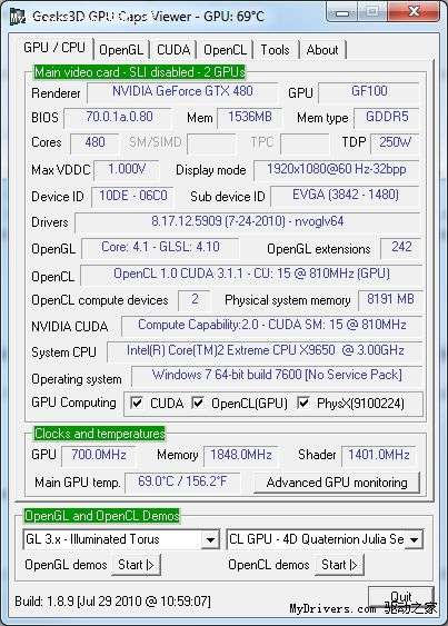 GPU Caps Viewer是一款以OpenGL为测试目标的显卡测试软件
