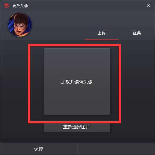 如果我们想要设置自定义头像,可以在头像设置窗口中点击上传,然后选择加载头像,然后选择我们想要设置的图片。