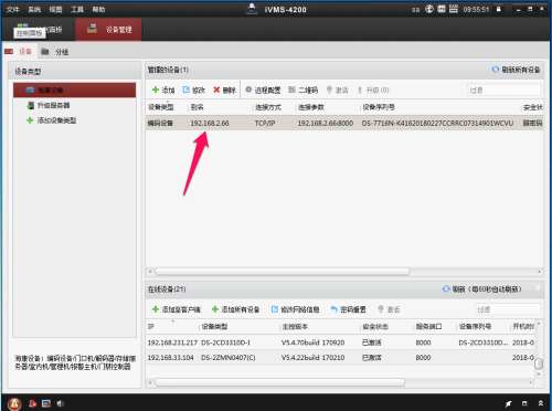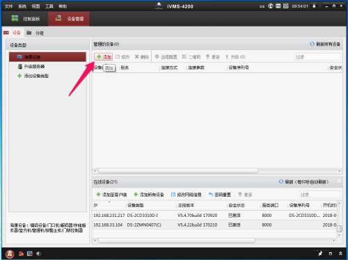 然后会打开设备管理的界面,在这个页面我们按照下图中红色箭头指示位置点击 添加,如下图:
