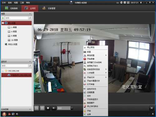 我们双击 监控点 栏目下的添加的视频设备,然后在右侧就会连接上改视频监控设备开始监控,如下图: