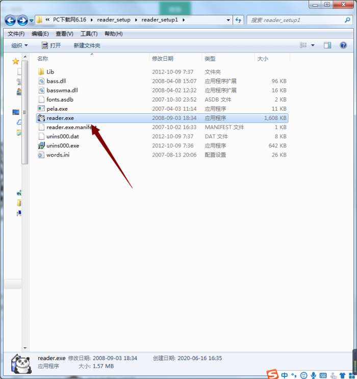 3、这时我们点击文件夹中的reader.exe应用程序