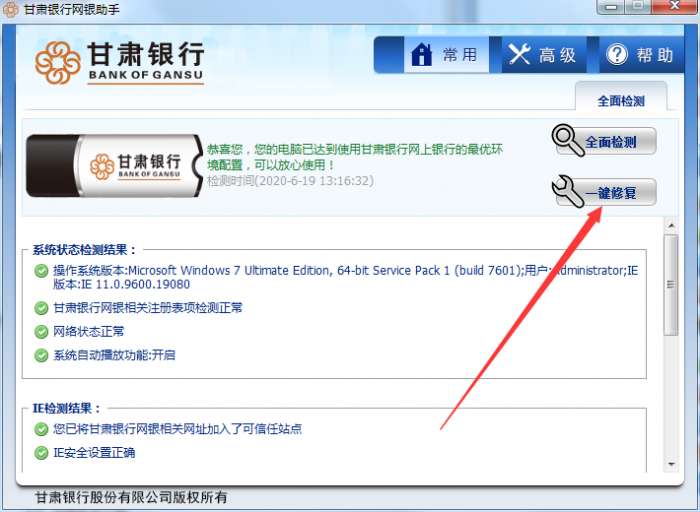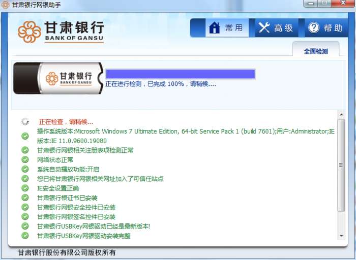 甘肃银行网银助手官方版为用户便捷使用网银提供了稳定的支持。甘肃银行网银助手支持系统快捷检测与各组件的下载,帮助用户解决网银使用过程中遇到的问题,让用户快捷实现网上安全支持。