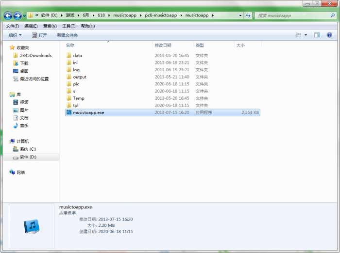 2.解压musictoapp软件,运行“EXE.文件”