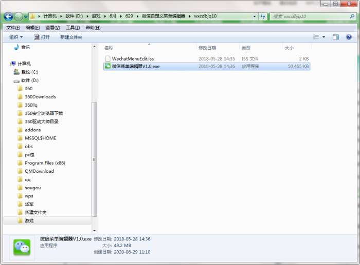 2.解压微信自定义菜单编辑器软件,运行“EXE.文件”