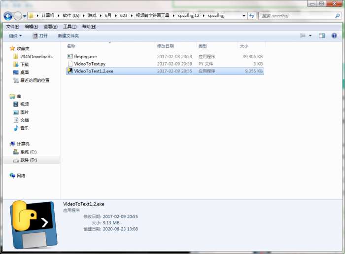 2.解压视频转字符画工具软件,运行“EXE.文件”
