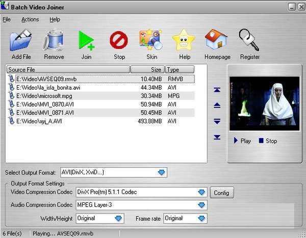 您可以加入不限数量的视频文件到列表中并能按需要重新排列顺序,然后将它们合并成一个大文件,文件的格式可以是AVI/DivX ,MPEG I/II,WMV/ASF 等。你也可以使用软件来转换单个文件,可以按需要修改帧率,大小等。同类型的其他软件只能连接相同类型的视频文件,但本软件可以处理不同类型的,如 AVI, MPEG, WMV,ASF等。您还可以在软件中预览你的作品,只需几下轻点鼠标,您就能享受将您的视频片断不间断播放的乐趣。